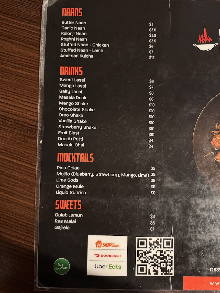 Beverages offered include traditional drinks such as Karak Chai and Doodh Patti, providing authentic local flavors. This menu suits both casual dining and quick orders, catering to those looking for a full meal as well as lighter options or snacks.